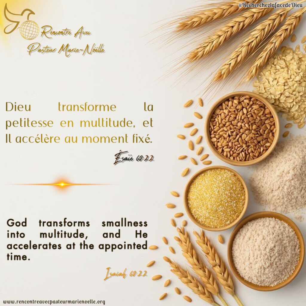Bien-aimés, ne méprisez pas vos petits commencements. Ce qui semble petit entre vos mains peut devenir grand entre les mains de Dieu. Et même si l’attente paraît longue, sachez que le Seigneur a fixé un temps où Il hâtera les choses. Quand Son accélération se déclenche, aucun obstacle ne peut résister. Attendez-Le avec foi : votre petitesse sera transformée en multitude, et votre saison d’accélération arrivera au nom de Jésus-Christ !