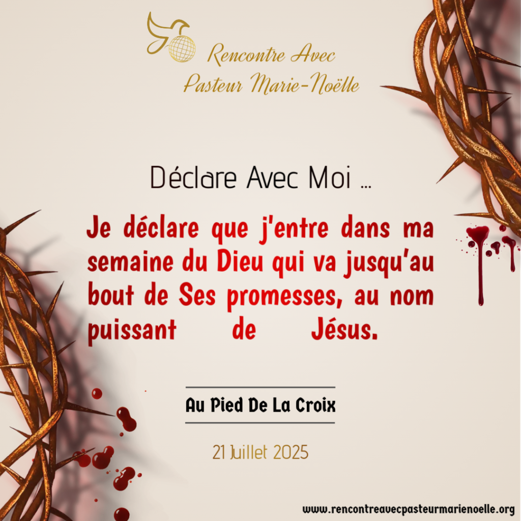 Cette semaine, déclare-le : « Mon Dieu va jusqu’au bout. Je n’ai pas été oubliée. Sa promesse est vivante. Et Son œuvre sera parfaite, car Il est fidèle. »